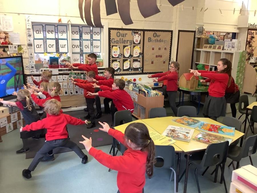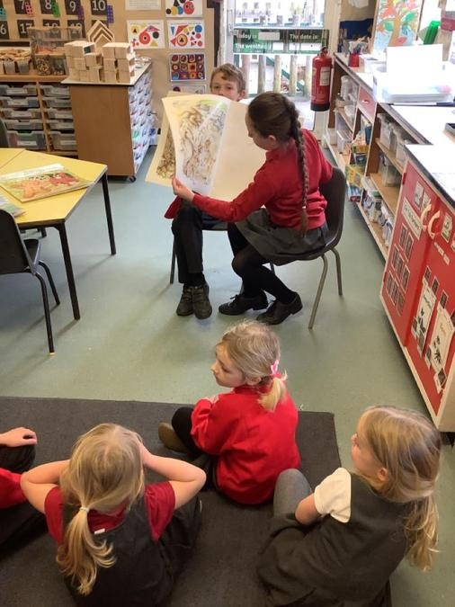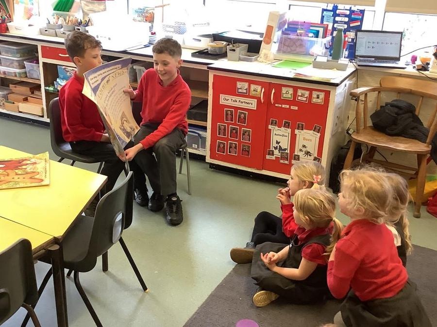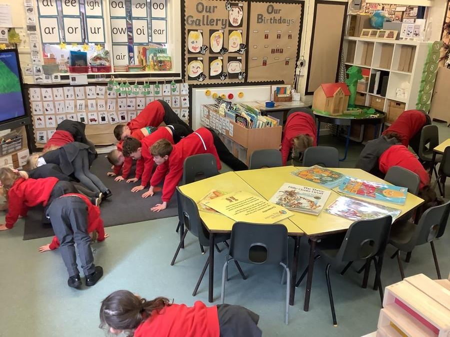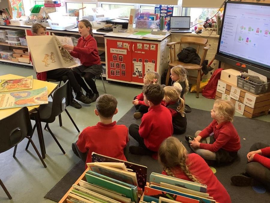 The children enjoyed their Buddies reading some Traditional Tales to them today. They listened really carefully and especially liked listening to the story of Cinderella. They also enjoyed some yoga together which was based upon the tale of The Three Billy Goats Gruff.