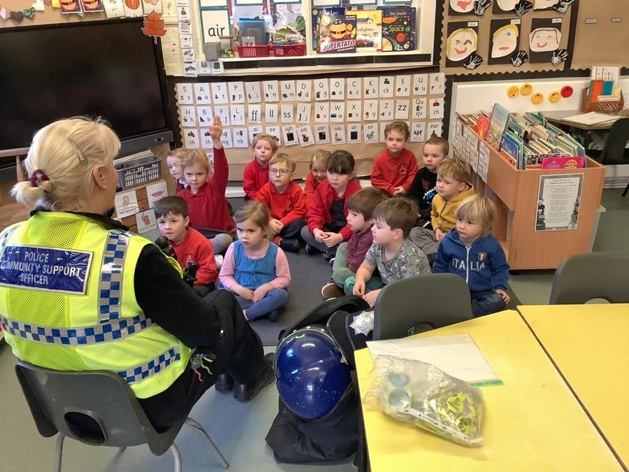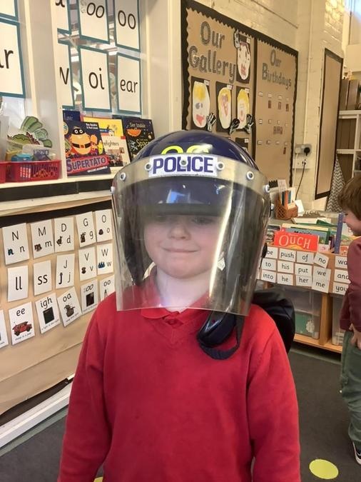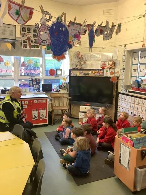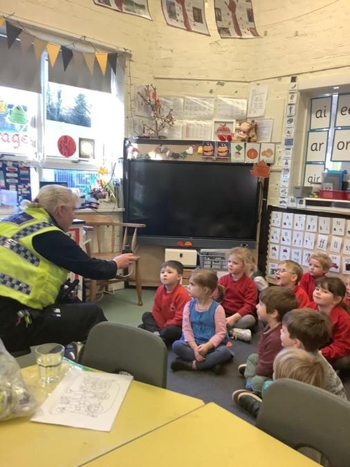 PCSO Sarah Pilcher visited us today. We discussed what the police use to help them do their job. Police dogs, helicopter, horses, motorbikes.