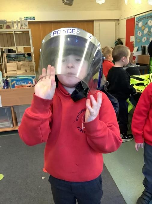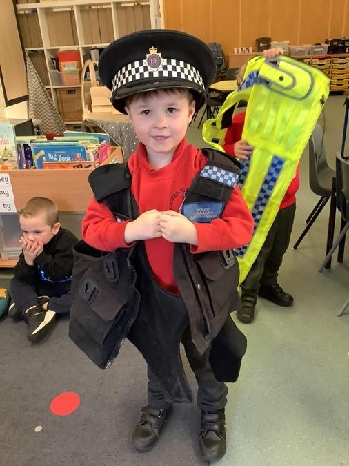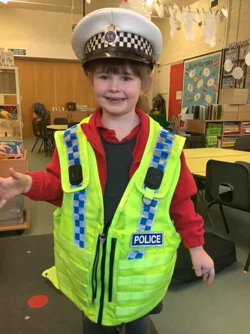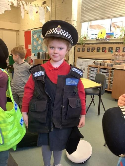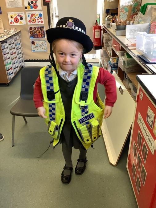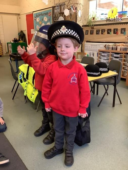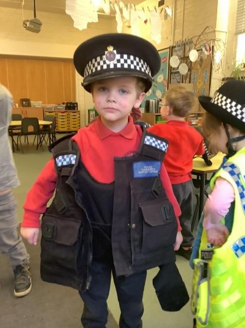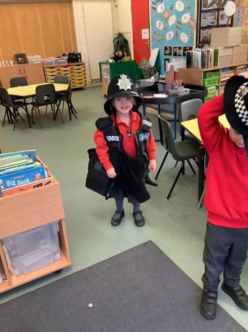 We found out about the equipment a police officer carries, a body camera to record, a walkie talkie for communication, we even spoke to the control centre!, a torch, gloves to keep them safe, mobile phone, pocket notebook.