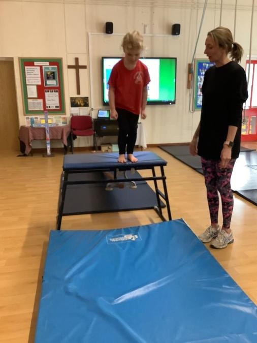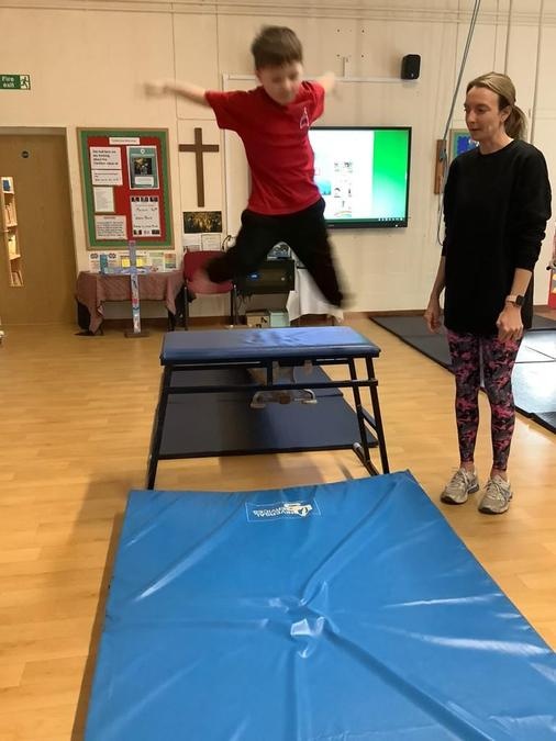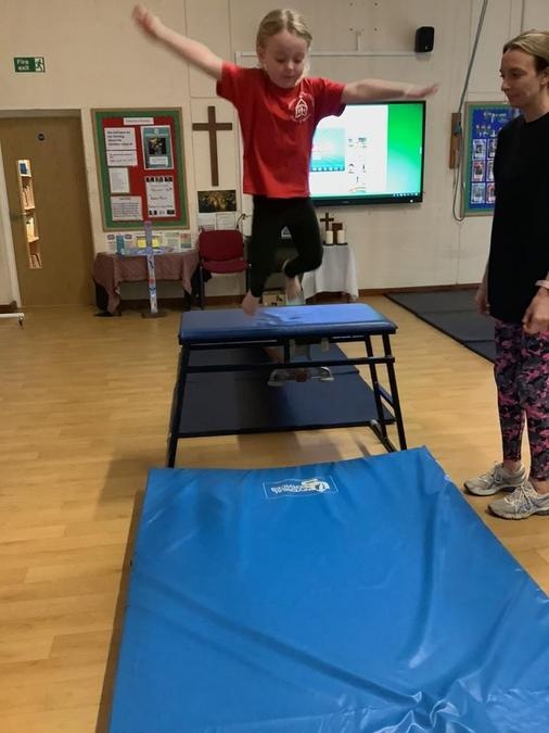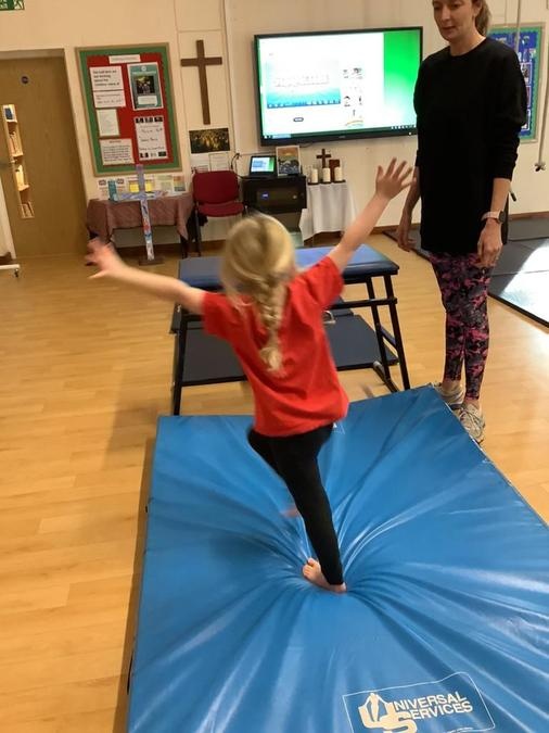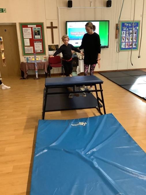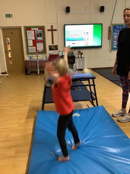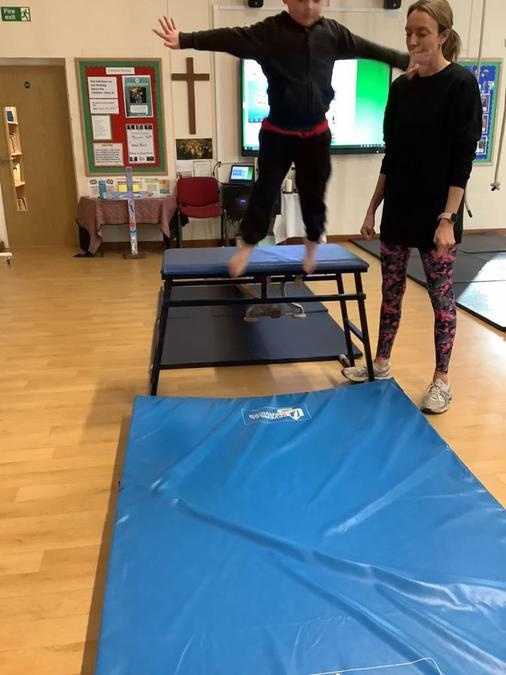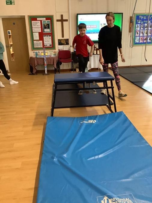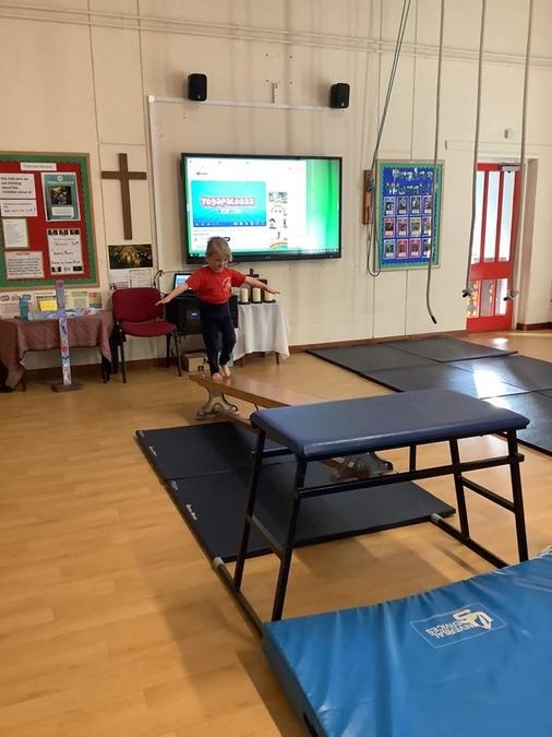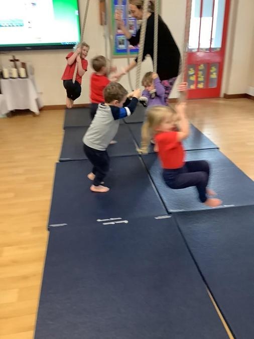 Every week in PE on a Wednesday, the children have been learning and developing their gymnastics skills with Mrs MacSwiney. They have been practising how to balance by walking up a balance bench, high jumps from an agility table to a safety mat , arm placement to show their finishing position and building strength in their arms, core and upper body to use the ropes.
