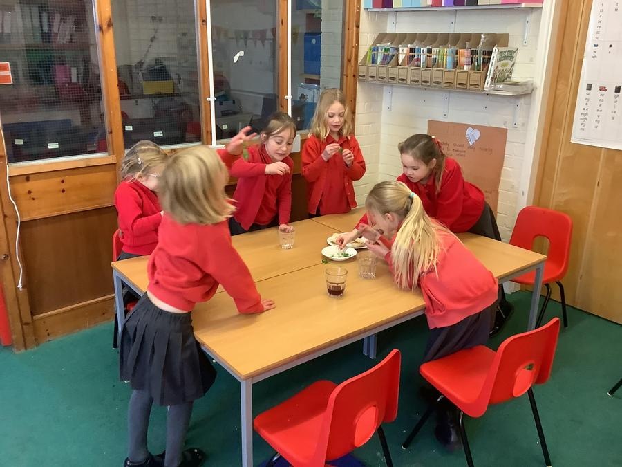 In Art, we used our knowledge from the last lesson of different types of lines to create water pictures. We listened to music whilst we created this - see the image above. In RE, we have been learning about Judaism and learned about the Seder plate for Passover, we tried some horseradish, salted parsley, Matzah and grape juice and learned that each food represented Jewish slaves. Most of us thought it was very yucky but Mrs Beale was pleased that we tried it.