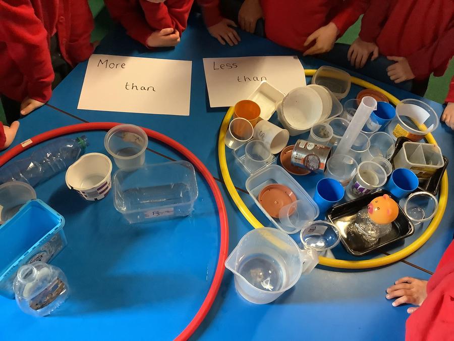 This week, both Year groups have continued their understanding of capacity in Maths. Both year groups estimated whether they thought certain containers would hold more than or less than 500ml water (see photo). In computing, we have continued our work on grouping objects by properties and learning that in order for a computer to do this the human has to program the computer correctly.