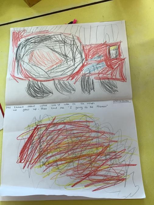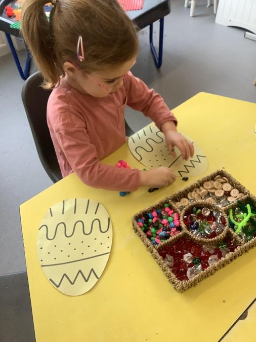 This week we have been learning all about Easter. We have enjoyed looking at the Easter Story, where we have supported this with lots of Easter based activities. These have included Easter themed colouring and painting, egg box filling and pouring and number egg hunting. As well as Easter activities the children talked about what they would like to be when they grow up. After talking about this, they each drew a picture in their independent books carefully adding lots of details and making sure to use the correct colours where needed.