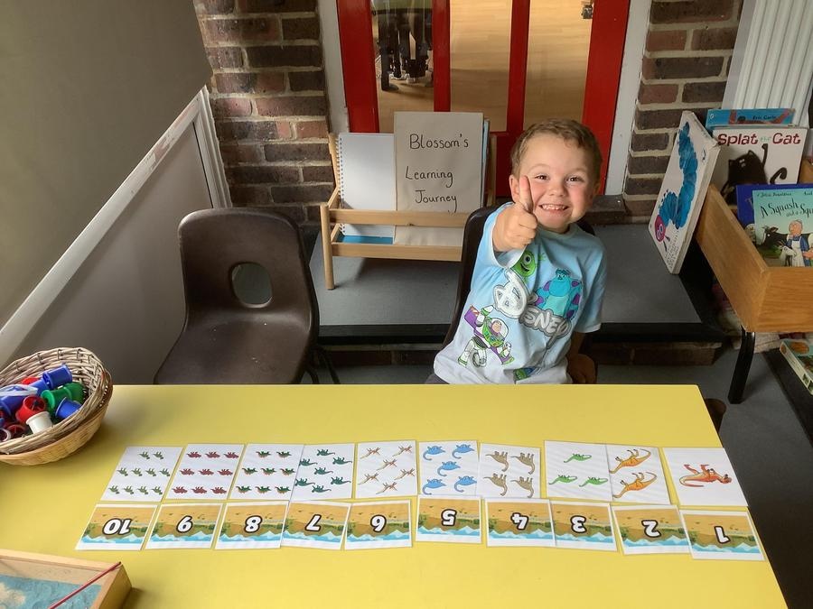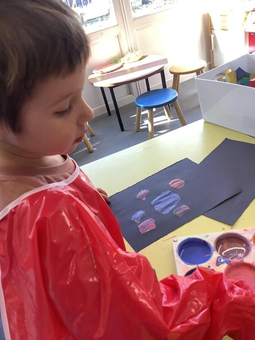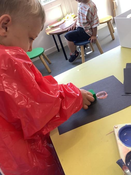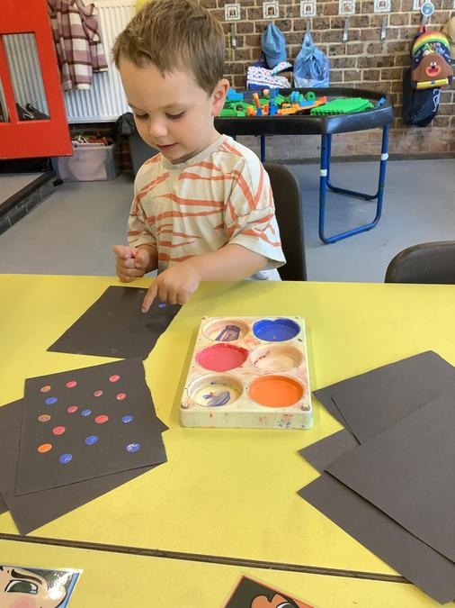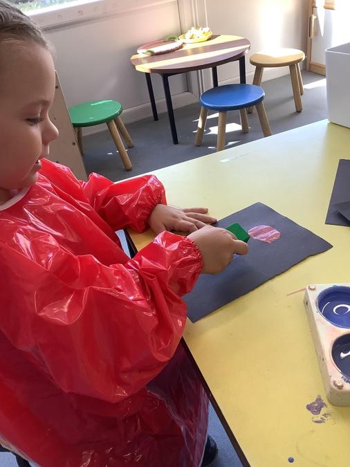 This week we have been continuing with the theme 'Marvellous me'. We looked at the book 'You Choose' where we discussed the different things we would all like to drive, do and live in. Alongside talking about our similarities and differences we focused on our counting and number recognition up to 5. The Blossom children also enjoyed exploring the paints with their hands, using their fingers to paint patterns. In addition to painting with their fingers the children used a range of shapes to create their own shape people.
