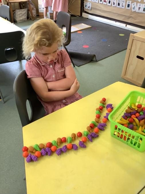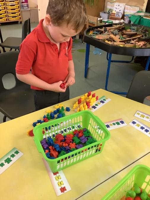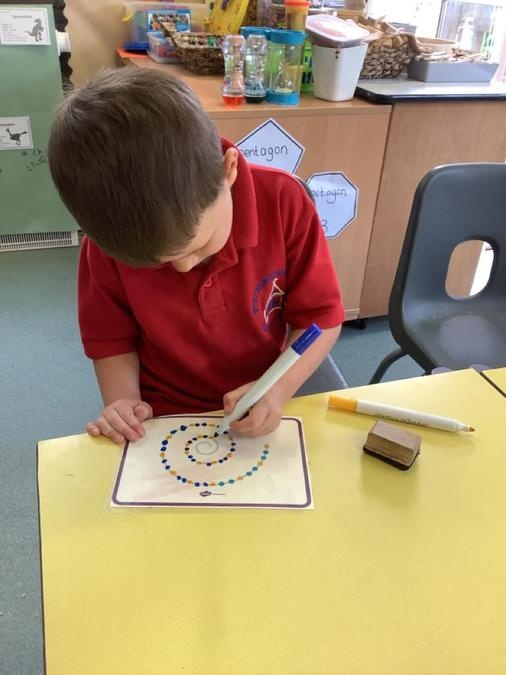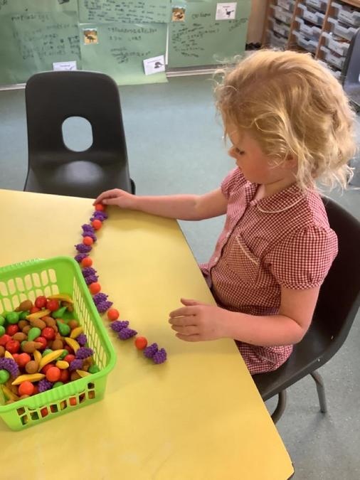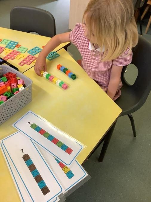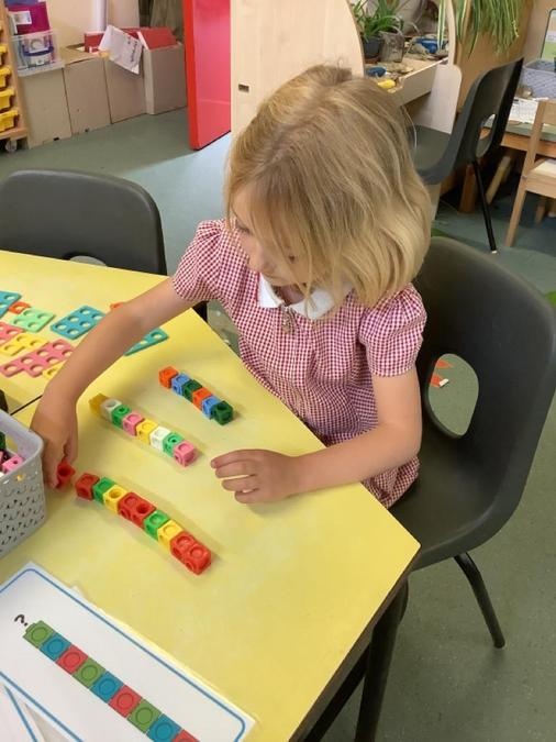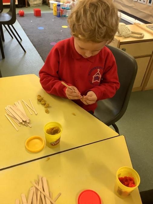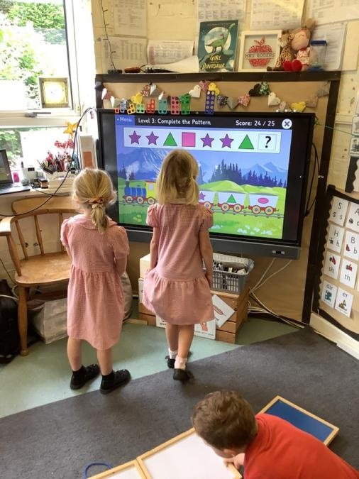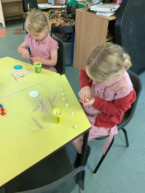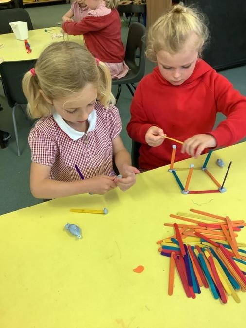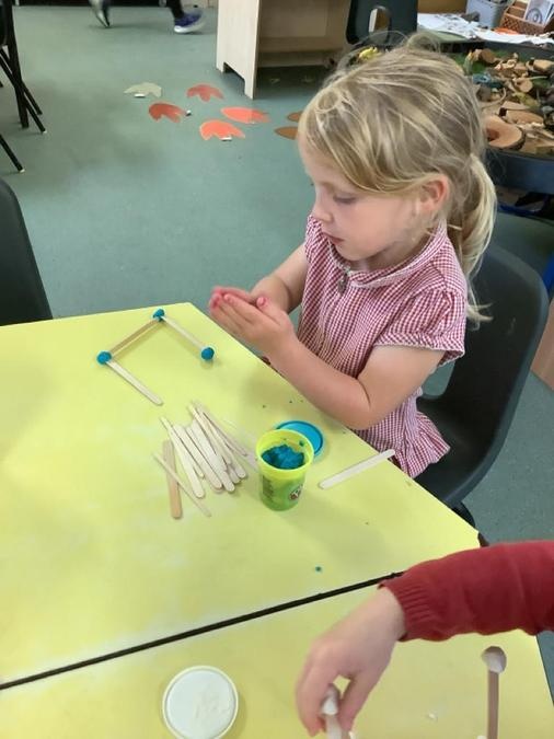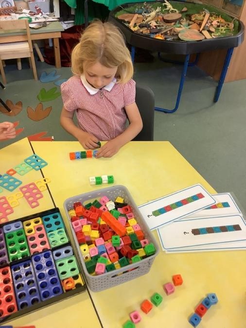 This week in our maths lessons we have been developing & securing our knowledge and understanding of the 2D & 3D shapes through different songs, activities & resources. The children's favourite activities were taking photographs of objects around the school & outside, then printing them to display in the classroom & making cubes using lollipop sticks and rolled spheres of playdough or blutac to join the sticks together. We also had a recap on our knowledge of AB, ABC, ABCD & ABCDD patterns, also using lots of different resources to enable the children to see patterns in different ways.