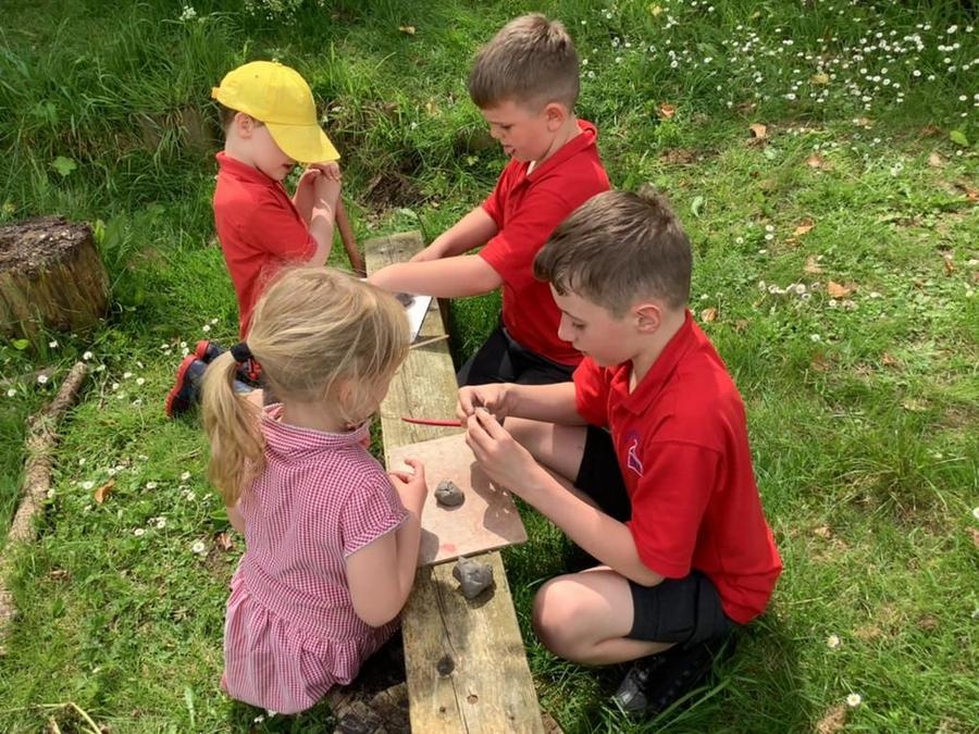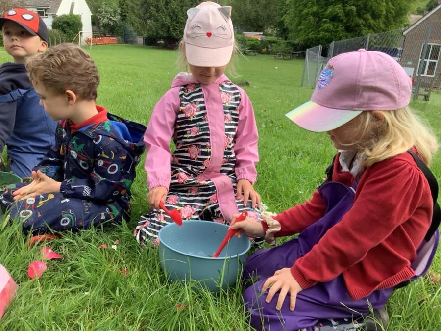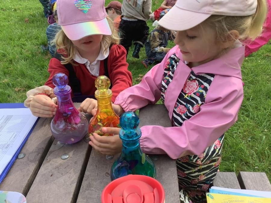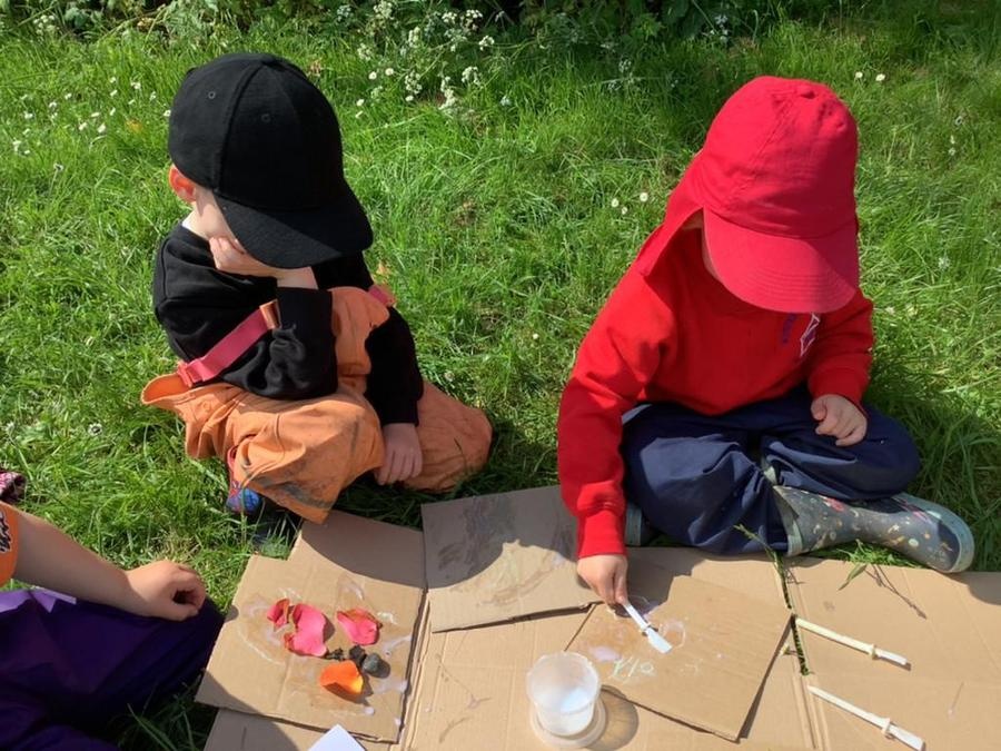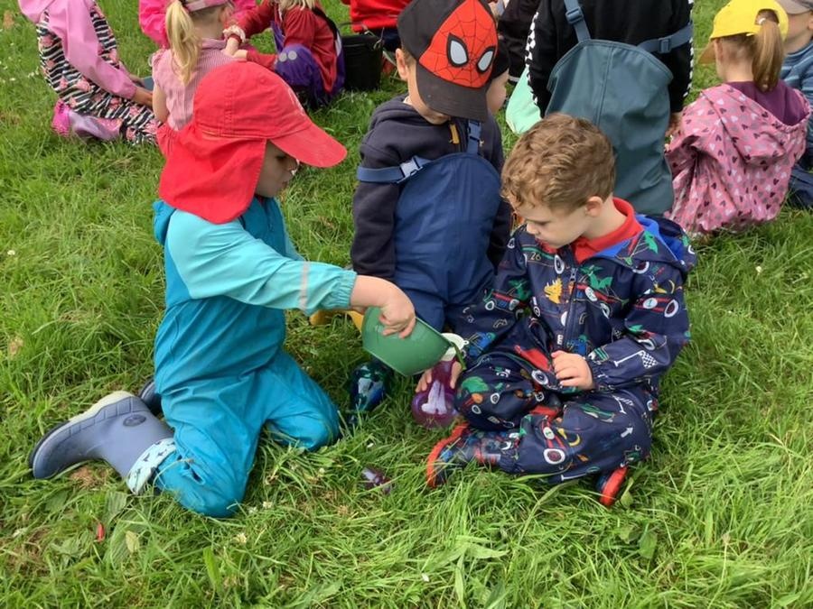 What a busy day we had and the weather was very kind to us for our Minibeast Outdoor Learning Day. The children all enthusiastically participated in all of the activities which included - Minibeast spotting/hunt, minibeast colouring, listening to stories, putting up a shelter, learning about different herbs & flowers and what they smell like, potion/perfume making with the herbs & flowers, making Very Hungry Caterpillars fruit skewers for our snack, natural art minibeasts, clay minibeasts with our year 4 Buddies, using the climbing & balance equipment and watching the Silver Birch class release their butterflies.