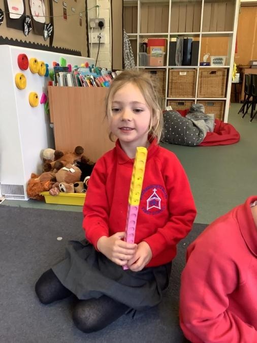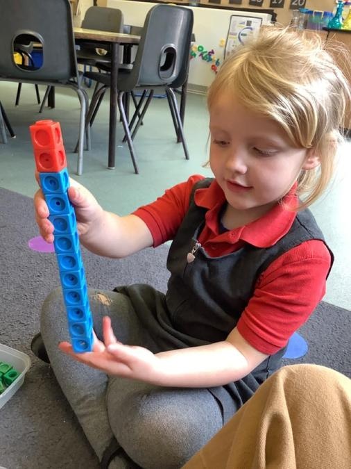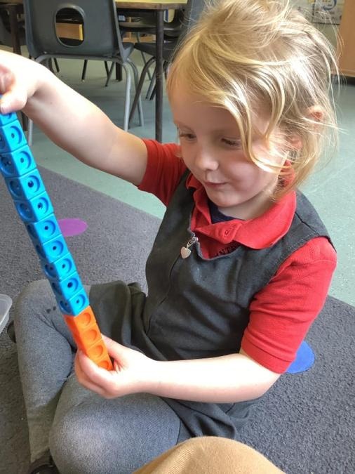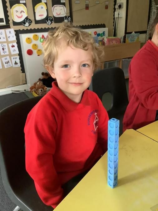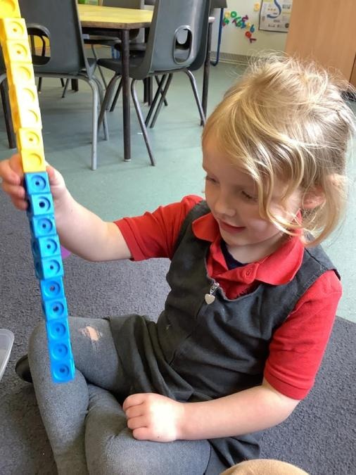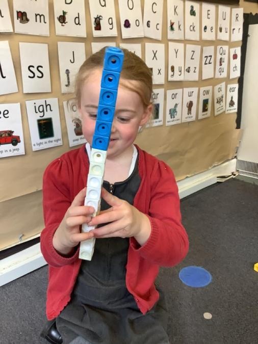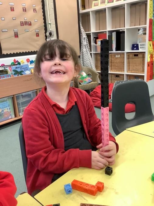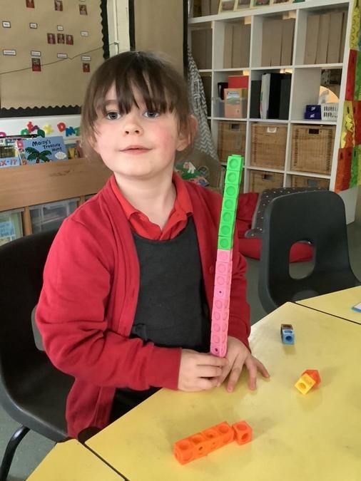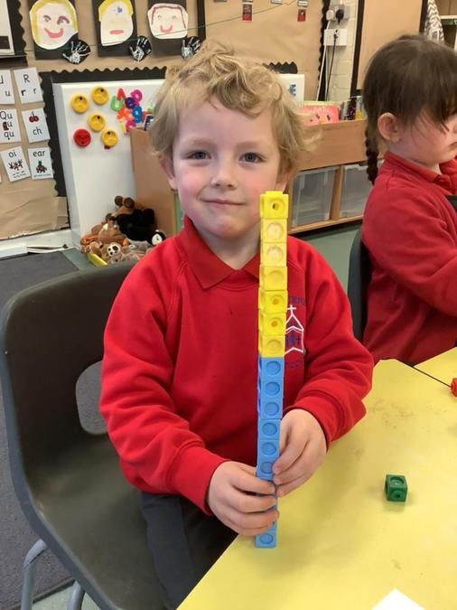 This week in maths we have been working on our knowledge and understanding of numbers beyond 10. The children have been practising building numbers beyond 10 using lots of different resources such as Numicon & pegs, Multilink, 100 Squares, number lines & numeral cards. In our focus activity the children first made a tower of 10, then added on the number of extra bricks they needed to add when given a number up to 20. They have also been practising their number formation, where to start each numeral & the direction they must follow.